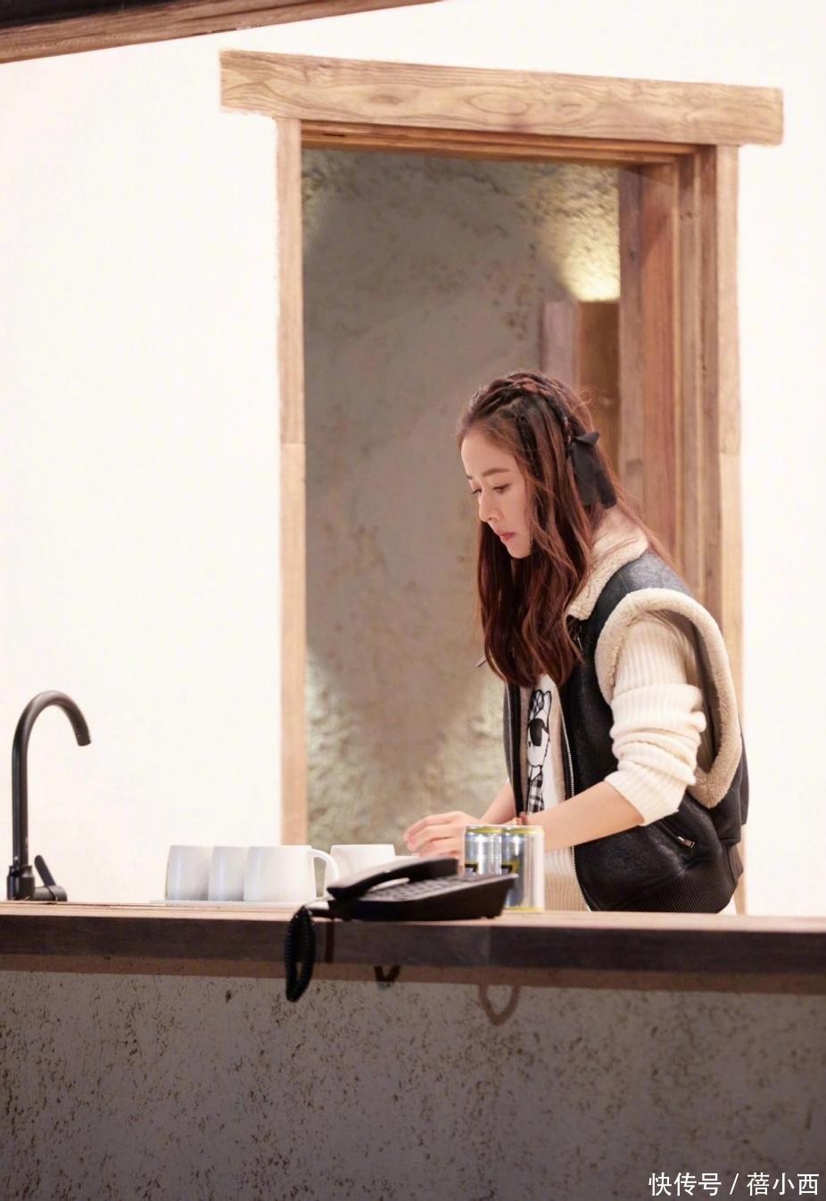 卫衣并没有选择单穿,我们可以看到白色内搭,其是小圆领设计。之所以这么穿也可以理解,毕竟所穿卫衣领口露肤度大,白内搭领口小些可以防风。卫衣外层搭了一件马甲,里子毛绒绒的,手感简直绝了。牛仔裤真是太百搭了,冬天不仅可配羽绒服、大衣,与卫衣结合也很漂亮,颜色选对了美得让人移不开眼。